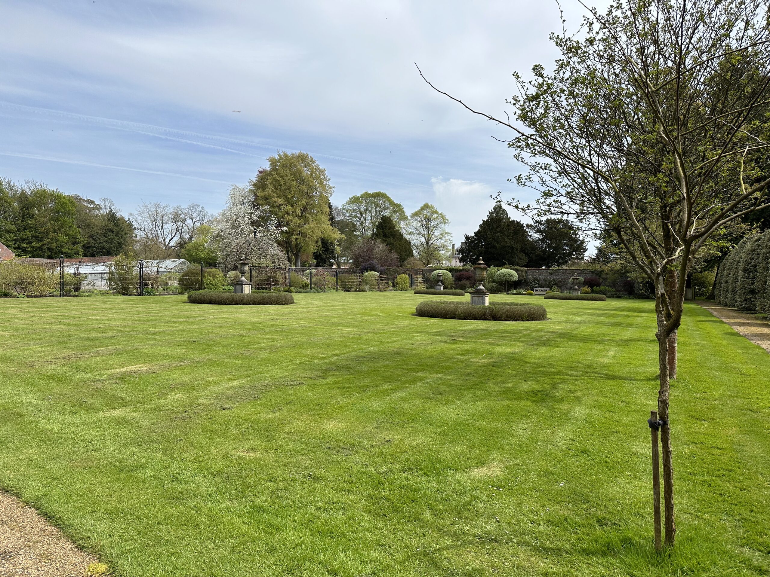 The garden has been planted to provide winter interest with early flowering, scented shrubs which include several types of viburnums, sarcococca, mahonia, lonicera fragrantissima, hamamelis, azara microphylla, daphnes, coronilla glauca, cornus Winter Beauty, chimonanthus praecox, stachyurus praecox and early flowering bulbs. The yew and box hedges provide winter form.