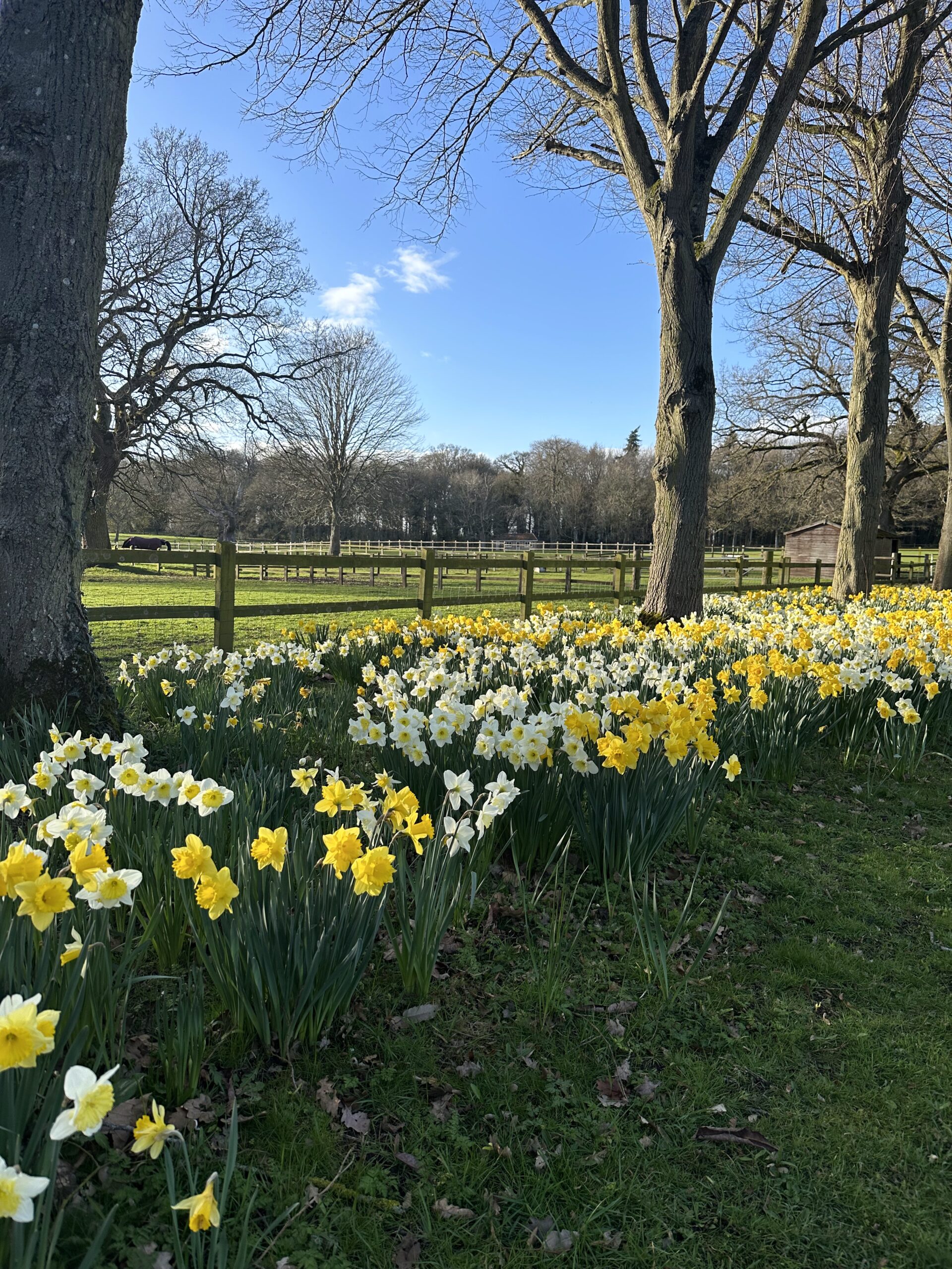 The river Nar flows out of the lakes through the 5 acre woodland garden, creating a magical setting for spring displays.